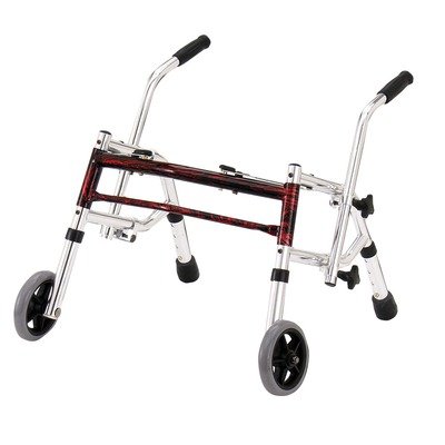 | Price : 10221-1 Color: Flame Red Pictured in Flame Red Features: -Pediatric Glider Walker.-Height and angle adjustable handles.-45° handle on pediatric model.-5'' flat-free tires allow for both indoor and outdoor use.-Tool free adjustments.-Wide base provides stability and balance.-Weight capacity: 175 lbs.-Available in flame blue and flame red. Options: -Available with a variety of optional accessories. Color/Finish: -Aluminum frame with choice of colored cross bar. Warranty: -Limited lifetime warranty.